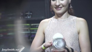 Jeny Smith bottomless in the club. Painted shorts looks like real